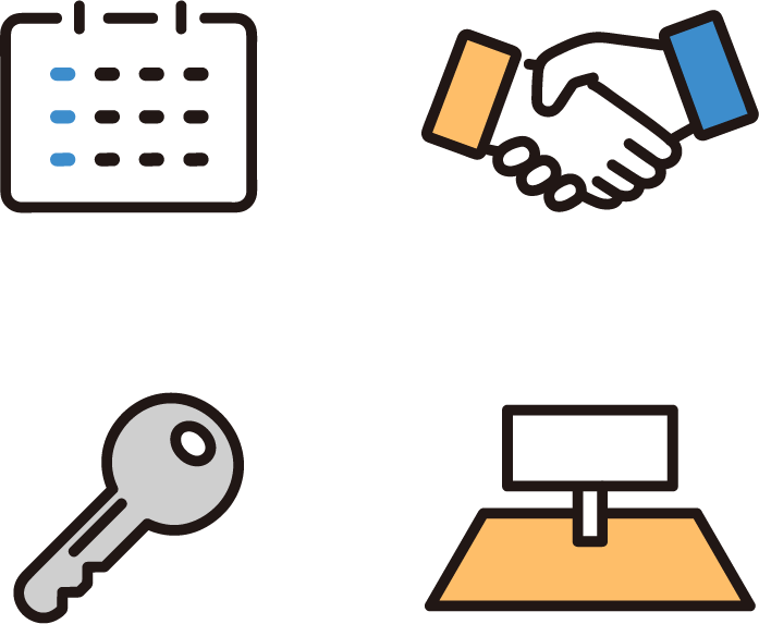 签订房地产购买合同、支付余款后由司法书士办理房屋所有权转移手续。
